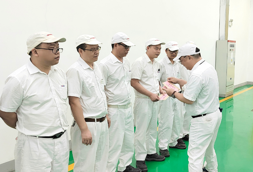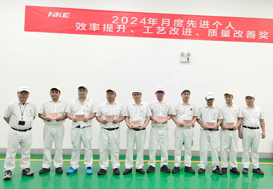 5月27日,集团恒隆凯迩必公司制造部在生产现场举行月度“效率提升、工艺改进、质量改善“先进员工颁奖仪式。
